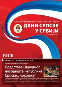 U okviru bogatog kulturnog programa, Narodno pozorište Republike Srpske prikazaće „Kokošku“ N.V.Koljade u režiji Predraga Štrpca u Kruševcu i Nišu.